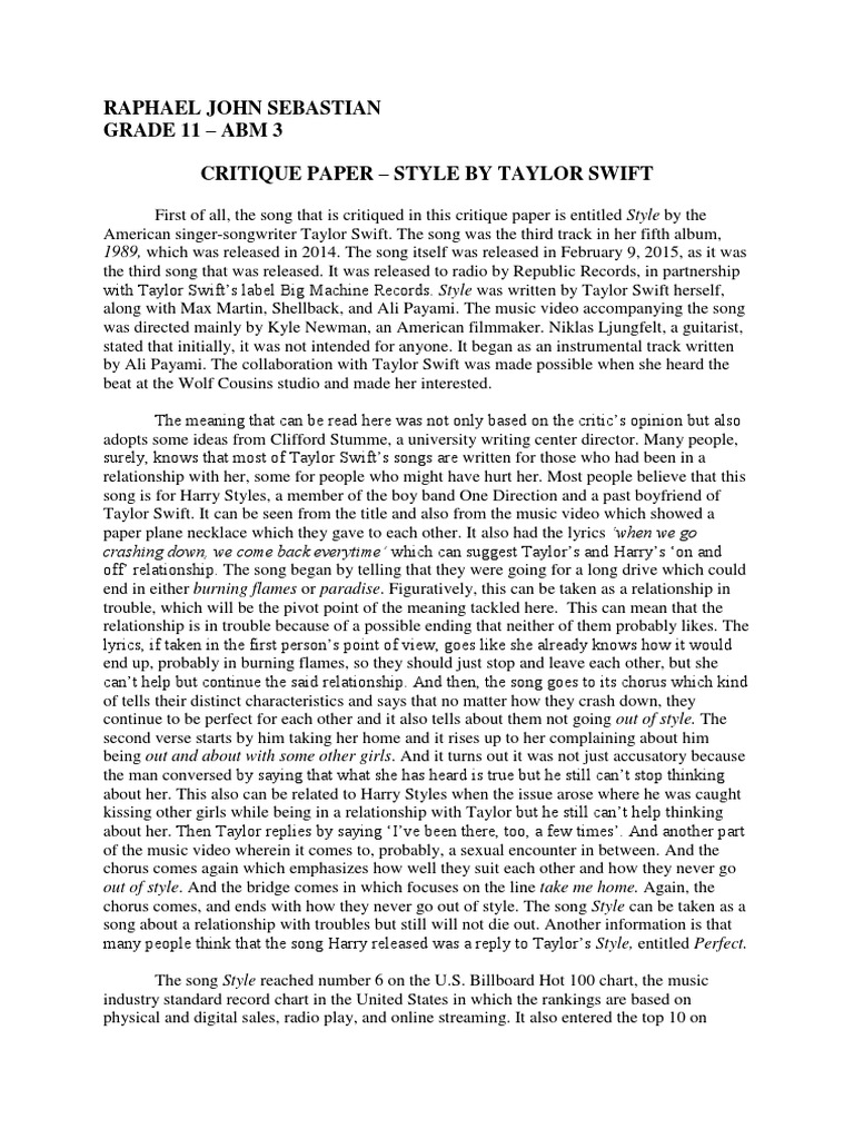 Critique Paper Example Song - Example Concert Critique Elements Of Music Entertainment - Scholarly article critique student example here is a really good example of a scholary research critique written by a student in edrs 6301.